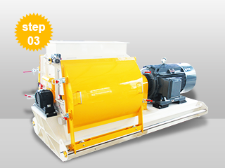 Generally,we can divide the raw materials into two parts:one need to be crushed,the other need not.So when we feed material to the feed production line,we will first separately feed them to different channels: particle materials go through feeding port to the feed grinder,mash materials go through feeding port to the feed mixer directly.