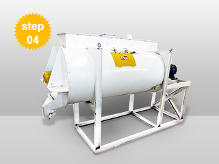 After crushing, all materials are mixed together in the feed mixer.Usually the volume of the bin for mixer,mixer and the buffer bin are all the same to ensure the mixer can work continuously batch after batch.