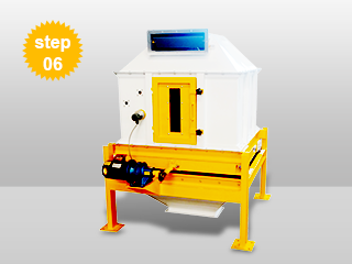 As we have add steam to the pellet mill,the pellet out from the pellet mill will be about 80℃,moisture 15%-16%,not suitable to pack,so we need to cool them.